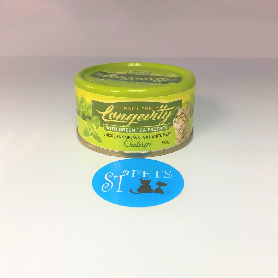 LONGEVITY WITH GREEN TEA ESSENCE Chicken & Skipjack Tuna White Meat & Catnip 80g